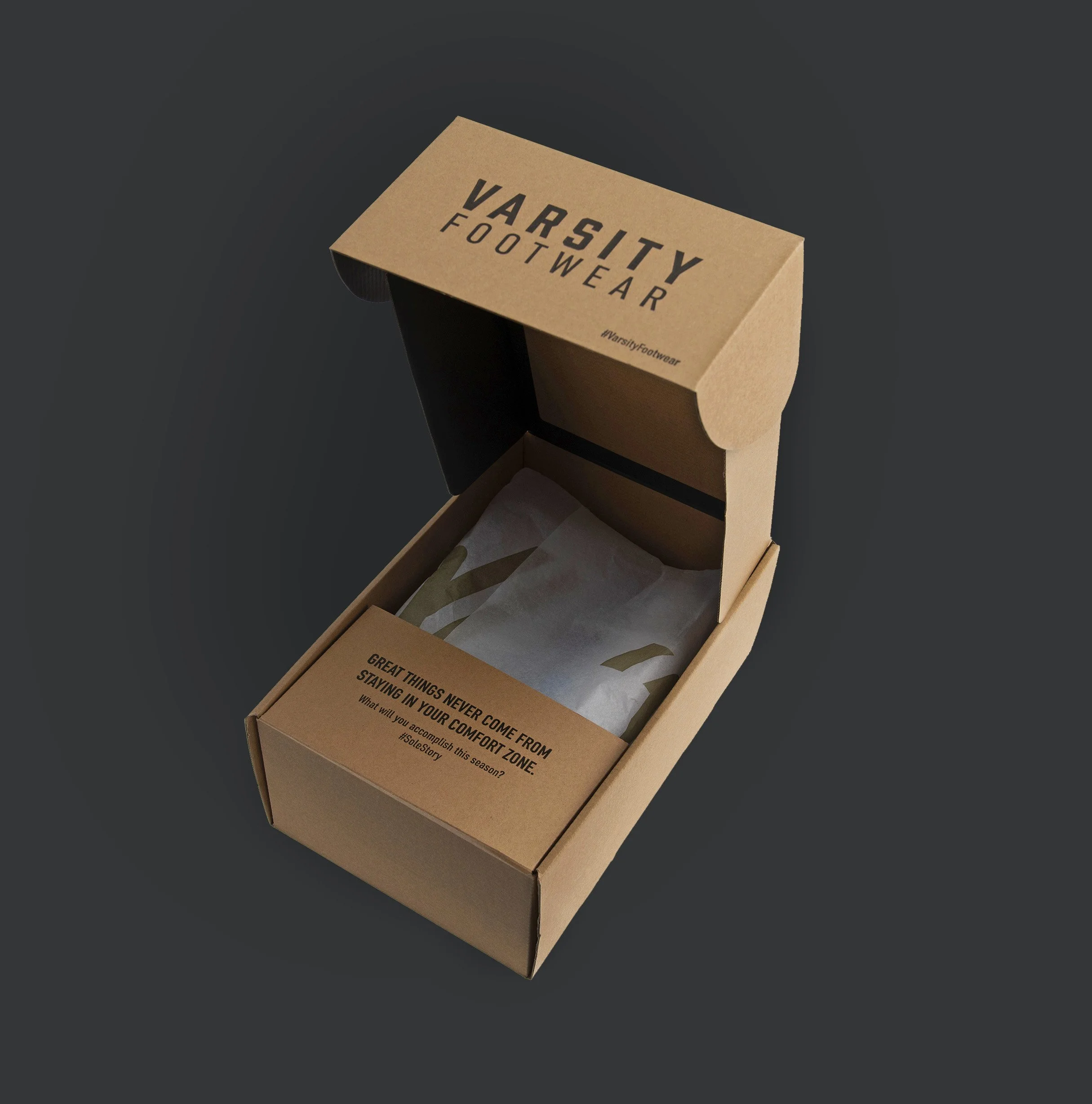 Comprised of six mobile boxes that open on hinges to reveal display shelving for Varsity shoes and stand on casters for easy mobility and a wide range of set up options. Four of the six boxes are totally customizable to swap out the product, features, and messaging based on the audience. The remaining 2 boxes display the Varsity Footwear logo on the outside and house shelving on the inside for shoe boxes in all sizes.